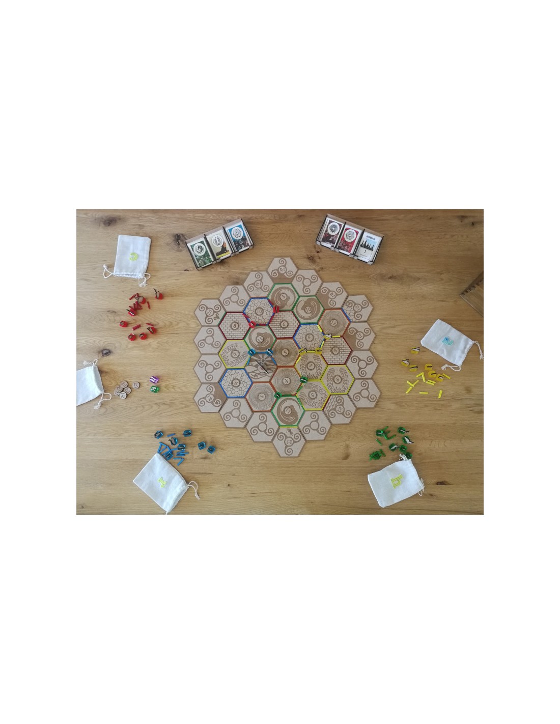 - Bolsas de tela personalizadas para los componentes de cada jugador.