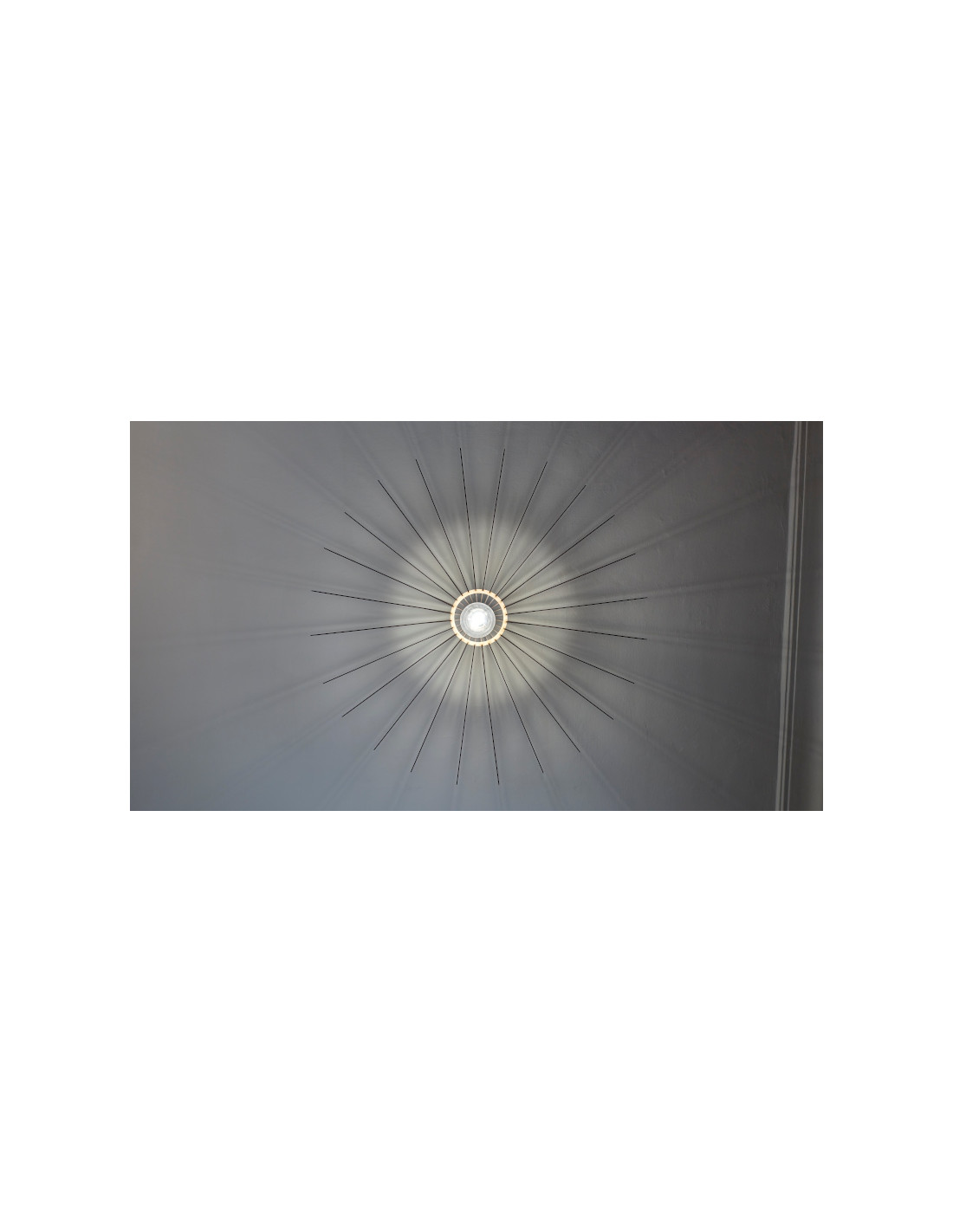 La configuración y la densidad de las "rayas" perimetrales pueden modificarse bajo encargo para proyectar el patrón de sombras que usted desee, desde un aura sutil hasta una explosión dramática de luz y oscuridad.