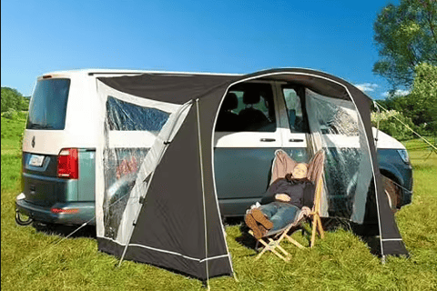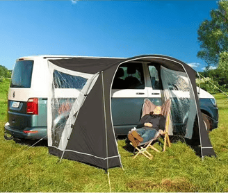 Para ampliar el uso de la furgoneta y añadir funciones "camper", es muy útil una tienda acoplada a la furgoneta. El costo estimado para esta tienda es de 150€.